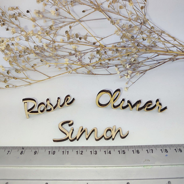Prénom en bois réalisé par système de découpe au laser, idéal comme marque place à poser sur la serviette ou dans l'assiette (Article très fragile).